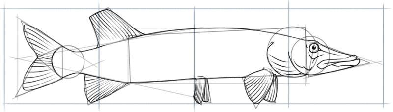 Ниже « PDF-загрузка». Там ты найдешь инструкции как рисовать щуку. Желаю удачи!