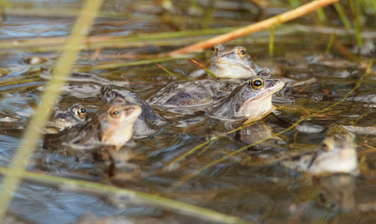 Весной, когда температура поднимается выше 12 °C, самцы болотных лягушек покидают свои зимовки и добираются до места, где они встречаются со многими другими болотными лягушками для размножения.