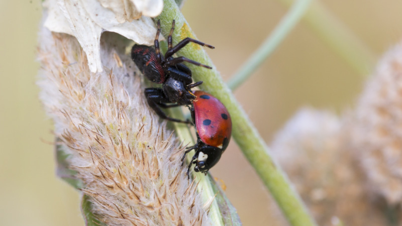 У божьих коровок много врагов, например, птицы, ящерицы, землеройки, лягушки и пауки. Как божья коровка защищается от них? Бог дал жуку секретное оружие, которое он всегда носит с собой. Это желтоватая, горькая, неприятно пахнущая жидкость. Как только жук чувствует опасность, он выделяет эту жидкость. Она ядовита для некоторых животных.