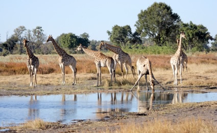 Жирафам достаточно той жидкости, которую они потребляют через листья.