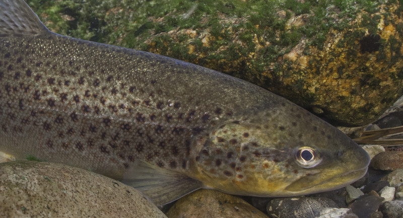 У нее коричневато-желтый или зеленоватый основной цвет и множество черных и красных пятен. Большинство пятен расположено на верхней половине тела. В результате они оптимально маскируются, если мы смотрим сверху на каменистый водоем.