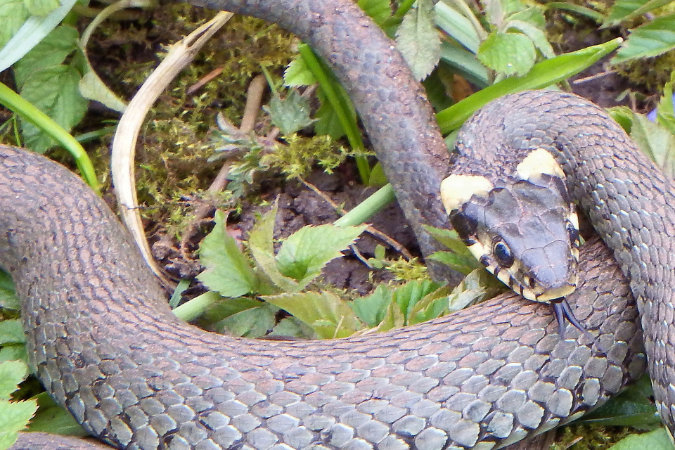 Остальная часть тела может быть окрашена от темно-оливкового до серого, до светлого с темными боковыми полосами. Независимо от того, как окрашено тело, шейная нашивка остается хорошо заметной. Это позволяет четко отличить его от всех других местных змей центральной Европы, а также от ломкой веретеницы.