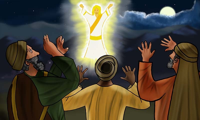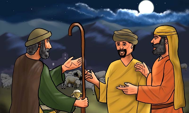 Но вдруг, посреди ночи засиял яркий свет. Они сильно испугались. Ангел, посланец Божий, пришел с небес к ним.