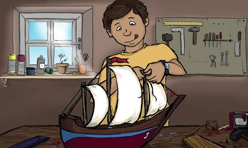 С большим интересом он принялся строить небольшую лодку. Ему даже разрешили заходить в мастерскую отца за инструментами.
