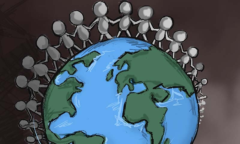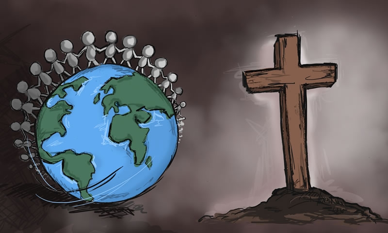 "Хм, Бог сотворил человека, но затем человек отвернулся от Бога и согрешил. Поэтому Иисус умер на кресте, Он заплатил Своей жизнью, чтобы мы снова могли принадлежать Богу".