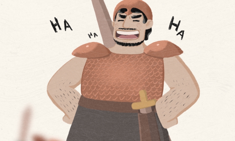 Голиаф: «Эй, тупые израильтяне! Ну что, боитесь, да?! Ха-ха-ха! Я вас съем живьём! И Бог ваш не сможет вам помочь. Я сильнее Его».