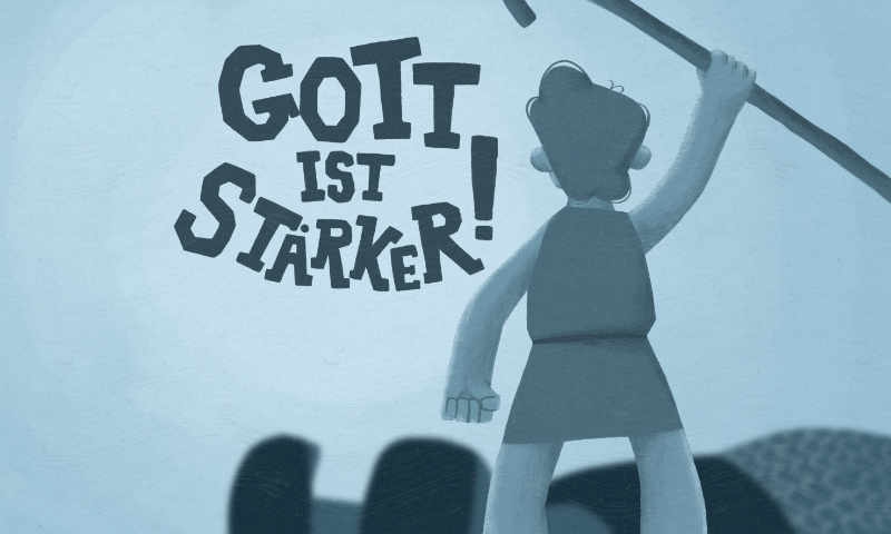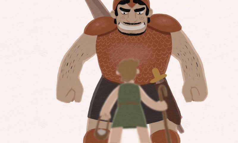 Голиаф: «Я что для тебя собака, что ты выходишь на меня с палкой? Или ты думаешь, что твой Бог защитит тебя? Ха-ха-ха, я сильней Его. Я тебя убью!»
